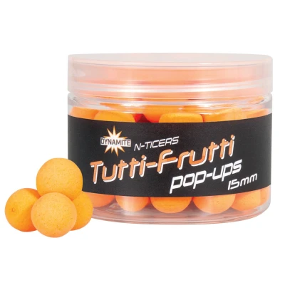 Dynamite N Ticers Tutti Frutti Pop Ups 15mm, Super Buoyant Hi Vis ups, Highly Flavoured, Ideal for Ronnie and Chod Rigs, Long Term Attractor Release.