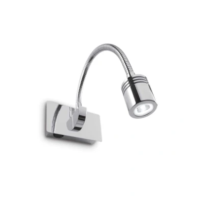 This is a small yet effective reading light. The fitting uses an LED lamp, which provides ample light while keeping overhead costs and energy consumption down to a minimum. Available in a choice of finishes, you can choose the one which matches the room best. The arm of the fitting is a flexi-tube, which is totally adjustable for your convenience. Includes a separate switch on the base. Class one.