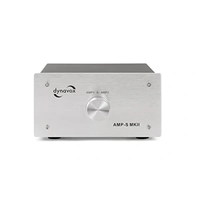 Dynavox AMP S MKII Amplifier and Box Switch in Metal Housing for Stereo Surround Connection via Banana Plug or Clamp Connector Silver