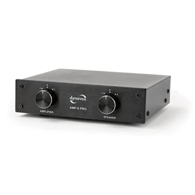 Dynavox AMP S Pro Amplifier and Speaker Switch in Metal Housing for Stereo Surround Amplifier, Banana Plug or Clamp Connector Black