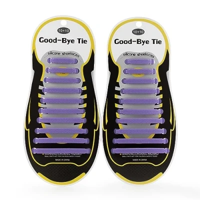 E EGART No Tie Laces for Kids and Adults, Elastic Trainers, Silicone Tieless Flat Shoelaces Running Shoes (Purple)