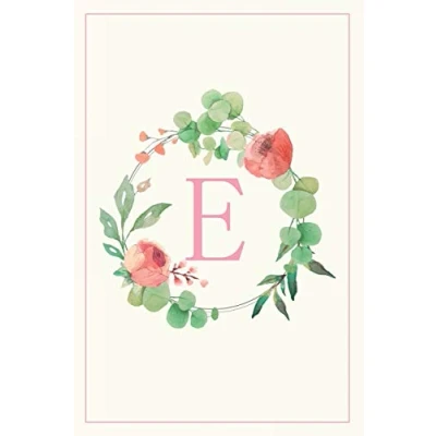 E: Pretty Floral Monogram Initial Blank Lined Journal Notebook for Women and Girls (Flower Wreath)