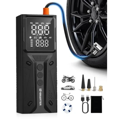 E SMARTER Tyre Inflator Air Compressor, 6000mAh 150 PSI Bike Pump with Overinflate Protection, Fast Inflation Portable for Car LCD Display, Tyres and Other Inflatables