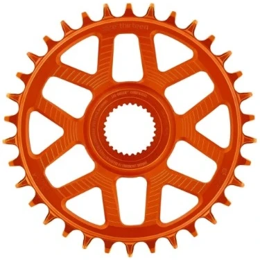 e*thirteen spared no expense creating the Helix R e*spec Chainring. Designed for Bosch Gen 4 e-bikes, this 1pc direct mount chainring is forged from 7075 AL for stiffness, strength and the longest wear life. The extensive CNC machining and M3 tooth profile delivers an ultra lightweight upgrade chainring that offers the best cross compatible Shimano/SRAM chain retention and eye-catching technical aesthetics. A custom outer dust cover enhances the integrated style and helps to preventcontamination.The Helix Race E*spec Ring is fully compatible with Shimano, SRAM, and TRP 11 and 12 speed drivetrains, and comes in Black, Bronze, Eggplant Purple or Naranja Orange for color coordination with e*thirteen cranks, cassettes, stems, tubeless valves and more. Available with 53mm chainline in 32T and 34T sizes, it supports dropping a chainring size to take full advantage of e*thirteen’s proprietary 9T smallest cog, wide range cassettes.Chain Reaction: 53mmCompatibilityBosch CX Gen4 MotorT-Type Chain CompatibleFeaturesLightweight, stiff, long wearlife, with technical aesthetics and enhanced chain retention. Cross compatibility with Shimano, Sram, and TRP 11/12s drivetrains.Included: Custom integrated Dust CoverMaterial: Forged-CNC 7075 ALMount: Direct Mount on E*thirteen Helix Race E*spec Alloy CranksSize: 32T, 34TWeight: 32T: 103g, 34T:111g (without rubber dust seal)