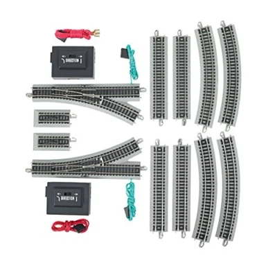 Set includes: 4 pieces 11.25″ radius curved track, 4 pieces of 5″ straight track, 1 remote turnout-left, 1 remote turnout-right, 2 Hayes bumpers Quick, easy assembly on floors, tables, and carpets without the need for special tools or fasteners Nickel Silver Rail Grey Roadbed N Scale 1:160, Manufacturer: Bachmann
