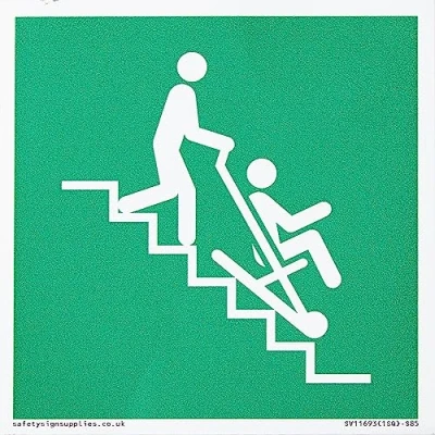 E060 : Evacuation chair This sign is made from vinyl high tack A stickier sticker. Uses a stronger adhesive to make it more suitable for plastic surfaces like Wheelie Bins or where the sticker might get rubbed. S85 square Sign Text: