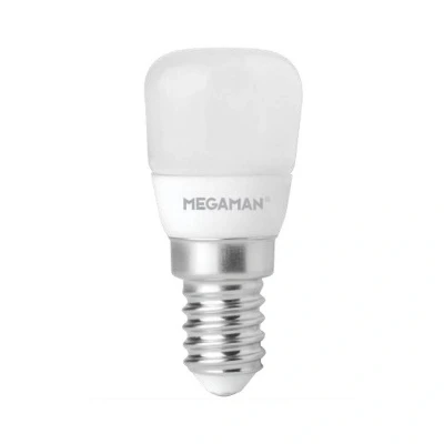 E14 2W 827 LED refrigerator lamp MEGAMAN Classic, warm white, dimmable With the same dimensions and high energy efficiency, this LED refrigerator lamp is the ideal replacement for conventional refrigerator lamps. In addition, this LED bulb generates significantly less waste heat. - Continuously dimmable (100 - 20%)