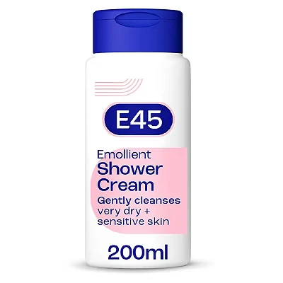 GENTLE AND EFFECTIVE CLEANSING – E45 Shower Cream is a fragrance free body wash that provides gentle and effective cleansing for very dry, sensitive and itchy skin to leave your skin feeling clean, soft and hydrated. The body’s optimal skin pH is between 4.7 and 5.75, and it’s important to preserve this to maintain the skin’s protective barrier and the optimal acid environment, whilst inhibiting the growth of bacteria. Our shower cream cleanses and moisturises the skin whilst preserving the pH. ACTIVELY MOISTURISES – E45’s shower cream is an emollient body wash that contains emollient ingredients to actively moisturise the skin whilst you shower, keeping it hydrated and preventing the skin drying out further. The moisturising body wash helps keep your skin looking and feeling nice and protects the skin from external agents such as germs and pollution. You can use E45 Shower Cream daily as an unscented body wash or on the hands to leave dry itchy skin feeling clean and hydrated. DERMATOLOGICALLY TESTED – E45 Shower Cream has been dermatologically tested and does not contain any perfume or soap, making it a gentle formulation that is suitable for everyday use on very dry, sensitive, and itchy skin. The cream does not foam and cleanses your skin without drying it out, leaving it clean and soft. To use, simply apply to wet skin and massage in, then rinse off with water and gently pat dry. QUALITY SKINCARE EVERY DAY – For 60 years, E45 has been a skincare expert in dry and itchy skin and treatment for eczema, psoriasis, ichthyosis and other dry skin conditions. We understand the importance of quality everyday products that care for your skin with minimal fuss. The E45 range of products has been developed for different skin types and parts of the body and works hard to protect and maintain skin health. It has proven dermatological expertise dedicated to vulnerable dry skin. HISTORY OF E45 – We released our E45 Cream in 1952 after a customer request for a product that would soothe and protect the skin. In 1963 physicians noticed the benefits of E45 cream for dry skin conditions and our cream was introduced to pharmacy and retail in 1980. We’ve continued to create products with patients and their skin in mind. We strive to continue to serve the needs of patients and healthcare professionals and produce better treatment options for patients' skincare routines.