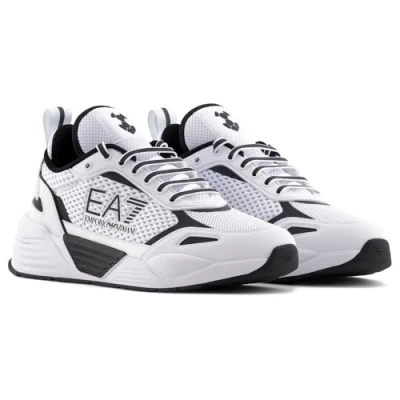 EA7 Emporio Armani ACE Runner Unisex Trainers, Size: 2.5, White/black Imitation leather/ textile