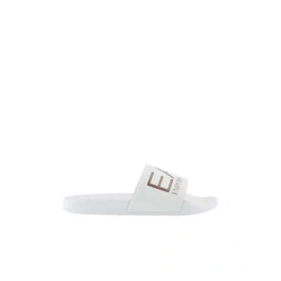 EA7 Emporio Armani Logo Sliders with Maxi Logo, Unisex Beach / Pool Slippers, White Rose Gold, 6 UK
