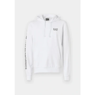 EA7 Emporio Armani Train LOGO Series Extended LOGO Unisex Hoodie white/black Sale at Zalando UK | Outer fabric material: 100% cotton | Sale order at Zalando UK! Size: Medium. Color: White/black. Pattern: print.