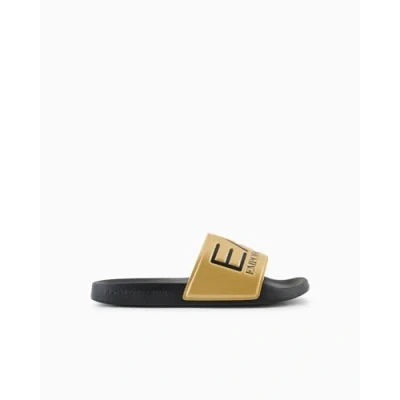 EA7 Emporio Armani Unisex Pool slides, Size: 8, Shiny gold/black shoes