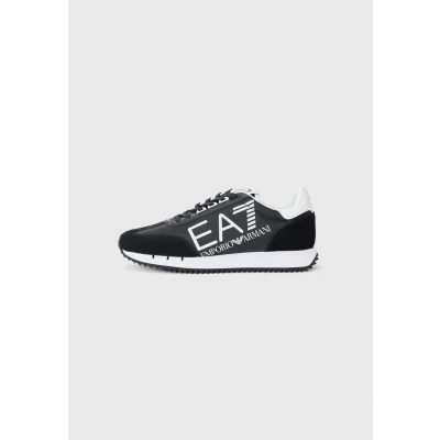 SIGNATURE DESIGN: Classic EA7 Emporio Armani runner trainers featuring bold logo branding on the side and a sleek black/white colour scheme PREMIUM MATERIALS: Crafted with high-quality suede and synthetic upper materials, complemented by durable rubber outsoles COMFORT FEATURES: Cushioned midsole and padded collar provide enhanced comfort for daily wear VERSATILE STYLE: Sporty yet sophisticated design perfect for casual outings, combining athletic functionality with luxury fashion DISTINCTIVE DETAILS: Contrasting white midsole, precision stitching, and branded lace system enhance the premium aesthetic