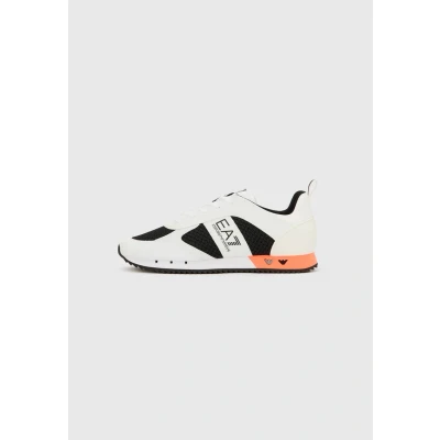 EA7 Emporio Armani Unisex Trainers white/black/orange fluo/silvercoloured Sale at Zalando UK | Upper material: imitation leather/ textile/Lining: textile/Sole: synthetics/Insole: textile | Sale order at Zalando UK! Size: 7.5. Color: White/black/orange fluo/silver/coloured.