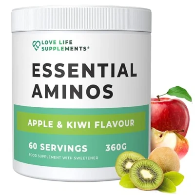 EAA Amino Acids Powder All 9 Essential Including BCAA's and 2 Grams of Leucine per Serving Apple & Kiwi Flavour 348g 60 Servings (5g EAA's Serving) Love Life Supplements…