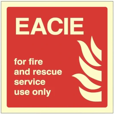 EACIE For Fire and Rescue Service Use Only (self adhesive, glow in the dark, safety sign)