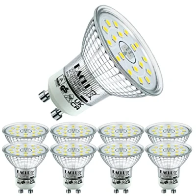EACLL GU10 LED Bulbs Cool White 4.9W Equivalent 75W Halogen, Pack of 8, 710 Lumens 6000K, AC 230V Flicker Free Spot Light, Wide Beam Angle 120, Non Dimmable Energy Saveing Reflector Lamp