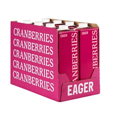 🧃 DISCOVER Eager Drinks' 8 x 1 litre multipack of Cranberry Juice, crafted to bring you the authentic taste of ripe Cranberries right to your door 📦 STORE Eager Cranberry Juice at room temperature until you're ready to enjoy it, then chill in the fridge for when you fancy a sweet refreshment ❤️ ENJOY Homemade Cocktails and Mocktails, or simply savour Eager's natural Cranberry Juice on its own for a refreshing breakfast drink 🌍 EXPLORE The delicious Eager Drinks range of Apple Juice, Smooth Orange Juice, Cranberry Juice, Pomegranate Juice, Tomato Juice, Pineapple Juice & Grapefruit Juice