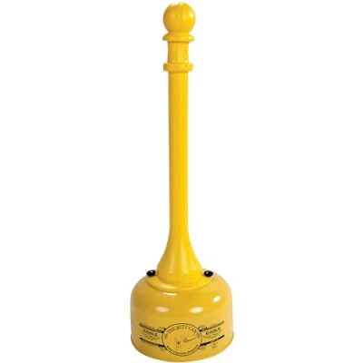 Restricts oxygen to quickly extinguish burning butts Top removes easily to empty FM Approved and Made in the USA Galvanized Steel w/poly tube - Yellow Indoor or outdoor use