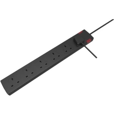 6 Gang extension socket with Neon Indicator fitted with a 13 A plug Colour Black. Length (m) 2.