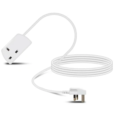 Eagle Single Gang Mains Power 13A Extension Socket to UK Plug Lead Cable, British Standards BS1363 3m White