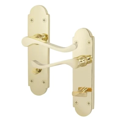 EAI Polished Brass Bathroom Door Handles Victorian Scroll Shaped 1 Pair of Internal