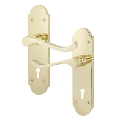 EAI Polished Brass Door Handles for Key Lock Victorian Scroll Shaped 1 Pair of Internal