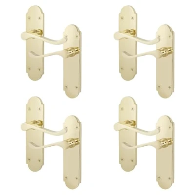 EAI Polished Brass Door Handles Victorian Scroll Shaped 4 Pairs of Internal Latch