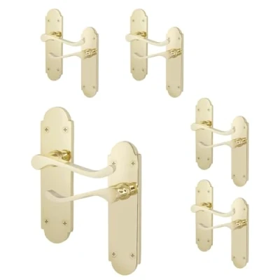 SLEEK & MODERN DESIGN: Our Victorian Scroll Shaped lever on backplate door handles feature a stylish sweeping handle design with vintage-style curved backplate to complement your interior décor. Designed with ergonomics in mind, our door handle provides a comfortable & secure grip. DURABLE & LONG-LASTING: High quality brass coating to resist corrosion & wear. The strong integrated spring mechanism ensures these handles are built to withstand daily use. EASY INSTALLATION: Installing our Scroll Shaped door handles is a breeze, thanks to the included hardware (5 x pairs of door handles with matching screws.) It’s a DIY-friendly solution that saves you time & hassle. SUITABLE FOR: All standard left & right-handed interior doors with a thickness of 30-45mm. Size: Backplate size 170 x 46mm (L x W), Handle Length: 95mm. Please refer to our images for detailed dimensions., Manufacturer: EAI