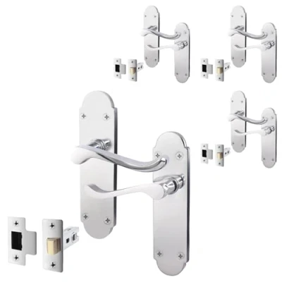 SLEEK & MODERN DESIGN: Our Victorian Scroll Shaped lever on backplate door handles feature a stylish sweeping handle design with vintage-style curved backplate to complement your interior décor. Designed with ergonomics in mind, our door handle provides a comfortable & secure grip. DURABLE & LONG-LASTING: High quality chrome coating to resist corrosion & wear. The strong integrated spring mechanism ensures these handles are built to withstand daily use. EASY INSTALLATION: Installing our Scroll Shaped door handles is a breeze, thanks to the included hardware (4 x pairs of door handles with matching screws, 4 x tubular latches 64mm case/44mm backset, 4 x pairs 76mm ball bearing hinges, 4 x matching keeps.) It’s a DIY-friendly solution that saves you time & hassle. SUITABLE FOR: All standard left & right-handed interior doors with a thickness of 30-45mm. Size: Backplate size 170 x 46mm (L x W), Handle Length: 95mm. Please refer to our images for detailed dimensions. COMPATIBLE WITH: See our full range of other compatible products & size variations on our store page. Click on EAI under the product title to view., Manufacturer: EAI