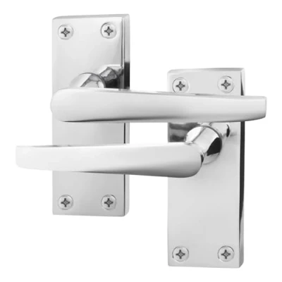 EAI Polished Chrome Door Handles 1 Pair Internal Latch on Backplate Straight Pattern
