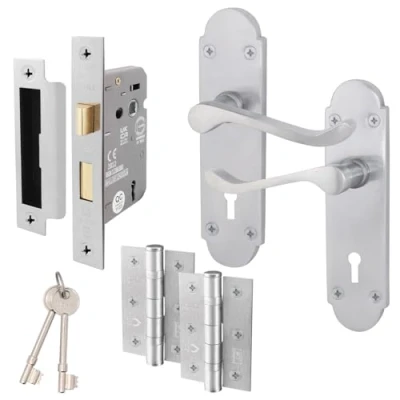 SLEEK & MODERN DESIGN: Our Victorian Scroll Shaped lever on backplate door handles feature a stylish sweeping handle design with vintage-style curved backplate to complement your interior décor. Designed with ergonomics in mind, our door handle provides a comfortable & secure grip. DURABLE & LONG-LASTING: High quality chrome coating to resist corrosion & wear. The strong integrated spring mechanism ensures these handles are built to withstand daily use. EASY INSTALLATION: Installing our Scroll Shaped door handles is a breeze, thanks to the included hardware (1 x pair of lock handles with matching screws, 1 x 3 lever sashlock 80mm case/57mm backset, 1 x pair 76mm ball bearing hinges, 1 x matching keep.) It’s a DIY-friendly solution that saves you time & hassle. SUITABLE FOR: All standard left & right-handed interior doors with a thickness of 30-45mm. Size: Backplate size 170 x 46mm (L x W), Handle Length: 95mm. Please refer to our images for detailed dimensions. COMPATIBLE WITH: See our full range of other compatible products & size variations on our store page. Click on EAI under the product title to view., Manufacturer: EAI
