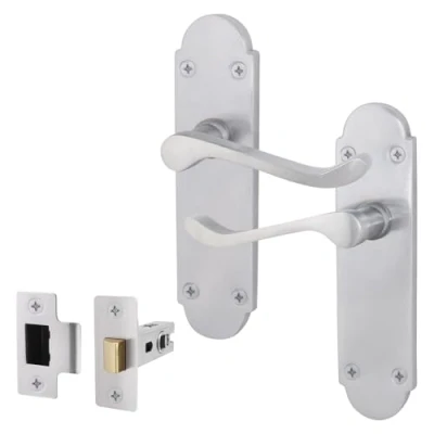 EAI Satin Door Handle Latch Set Victorian Scroll Shaped 1 Pair of Internal Chrome Lever Handles on Backplate & (64mm)