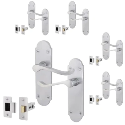 SLEEK & MODERN DESIGN: Our Victorian Scroll Shaped lever on backplate door handles feature a stylish sweeping handle design with vintage-style curved backplate to complement your interior décor. Designed with ergonomics in mind, our door handle provides a comfortable & secure grip. DURABLE & LONG-LASTING: High quality chrome coating to resist corrosion & wear. The strong integrated spring mechanism ensures these handles are built to withstand daily use. EASY INSTALLATION: Installing our Scroll Shaped door handles is a breeze, thanks to the included hardware (5 x pairs of handles with matching screws, 5 x tubular latches 64mm case/44mm backset, 5 x matching keeps.) It’s a DIY-friendly solution that saves you time & hassle. SUITABLE FOR: All standard left & right-handed interior doors with a thickness of 30-45mm. Size: Backplate size 170 x 46mm (L x W), Handle Length: 95mm. Please refer to our images for detailed dimensions. COMPATIBLE WITH: See our full range of other compatible products & size variations on our store page. Click on EAI under the product title to view., Manufacturer: EAI