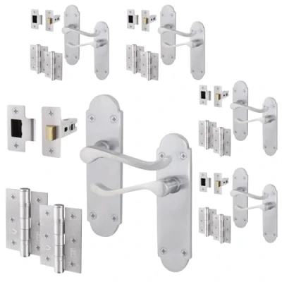 SLEEK & MODERN DESIGN: Our Victorian Scroll Shaped lever on backplate door handles feature a stylish sweeping handle design with vintage-style curved backplate to complement your interior décor. Designed with ergonomics in mind, our door handle provides a comfortable & secure grip. DURABLE & LONG-LASTING: High quality chrome coating to resist corrosion & wear. The strong integrated spring mechanism ensures these handles are built to withstand daily use. EASY INSTALLATION: Installing our Scroll Shaped door handles is a breeze, thanks to the included hardware (5 x pairs of handles with matching screws, 5 x tubular latches 64mm case/44mm backset, 5 x pairs 76mm ball bearing hinges, 5 x matching keeps.) It’s a DIY-friendly solution that saves you time & hassle. SUITABLE FOR: All standard left & right-handed interior doors with a thickness of 30-45mm. Size: Backplate size 170 x 46mm (L x W), Handle Length: 95mm. Please refer to our images for detailed dimensions. COMPATIBLE WITH: See our full range of other compatible products & size variations on our store page. Click on EAI under the product title to view., Manufacturer: EAI