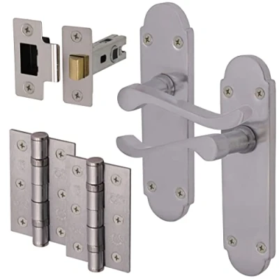 SLEEK & MODERN DESIGN: Our Victorian Scroll Shaped lever on backplate door handles feature a stylish sweeping handle design with vintage-style curved backplate to complement your interior décor. Designed with ergonomics in mind, our door handle provides a comfortable & secure grip. DURABLE & LONG-LASTING: High quality chrome coating to resist corrosion & wear. The strong integrated spring mechanism ensures these handles are built to withstand daily use. EASY INSTALLATION: Installing our Scroll Shaped door handles is a breeze, thanks to the included hardware (1 x pair of handles with matching screws, 1 x tubular latch 64mm case/44mm backset, 1 x pair 76mm ball bearing hinges, 1 x matching keep.) It’s a DIY-friendly solution that saves you time & hassle. SUITABLE FOR: All standard left & right-handed interior doors with a thickness of 30-45mm. Size: Backplate size 170 x 46mm (L x W), Handle Length: 95mm. Please refer to our images for detailed dimensions., Weight: 88.1849048 pounds, Manufacturer: EAI