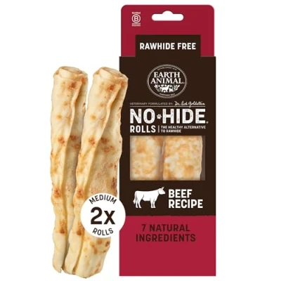 Earth Animal No Hide® Beef Rolls (2 Pack) Long Lasting Dog Chews Natural Treats for Medium Dogs (18 34 kg) Easily Digestible, Supports Healthy Teeth & Gums 100% Recyclable Packaging