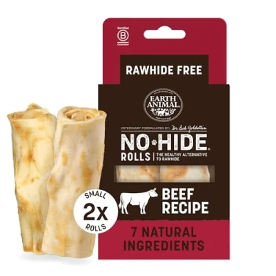 Earth Animal No Hide® Beef Rolls (2 Pack) Long Lasting Dog Chews Natural Treats for Small Dogs (5 18 kg) Easily Digestible, Supports Healthy Teeth & Gums 100% Recyclable Packaging