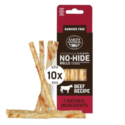 THE HEALTHY ALTERNATIVE TO RAWHIDE – Rawhide? No thanks. No-Hide sets the standard with these digestible, long-lasting dog and cat chews. Packed with flavour and made without animal hides or any chemicals, it’s the feel-good choice for healthy pets PERFECTLY PORTIONED FOR SMALL DOGS & CATS – These No-Hide beef dog chews are the ideal size for small pups and cats (< 5 kg). With simple ingredients and an irresistibly chewy texture, they’re easy to digest and full of flavour MADE USING THE FINEST NATURAL INGREDIENTS – Crafted with humanely raised beef, brown rice, olive oil and pineapple stem to aid digestion, these dog chews contain no synthetics or preservatives – just wholesome goodness baked to chewy perfection HEALTHY DENTAL CARE – No-Hide cat and dog chews are naturally long-lasting, helping to reduce plaque and tartar buildup through healthy chewing to support strong teeth and gums – because good dental care starts with every chew IRRESISTIBLY GOOD & RESPONSIBLY MADE – As a certified B Corp, Earth Animal does things differently. Our rawhide free dog chews are made with simple, natural ingredients and 100% recyclable packaging — because wagging tails shouldn’t cost the earth