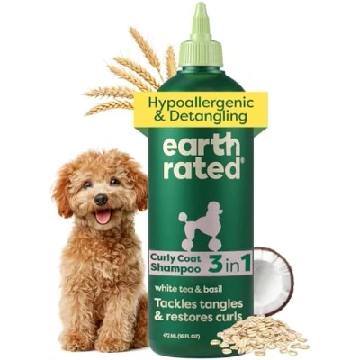Earth Rated Coat Specific 3 in 1 Curly & Wavy Coated Dog Puppy Shampoo, Conditioner and Deodorizer, Formulated to Tackle Tangles Restore Curls, Refreshing White Tea Basil Scent, 16 oz.
