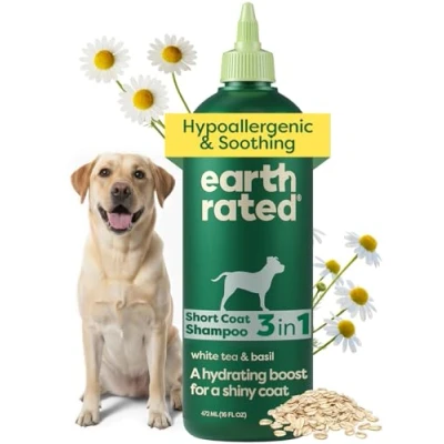 3-IN-1 DOG SHAMPOO AND CONDITIONER: This triple-action dog soap formula cleans, conditions, and deodorizes in one simple step. A time-saving essential for grooming routines, our deodorizing dog shampoo is an easy upgrade to your dog bath supplies SOOTHING FORMULA FOR SENSITIVE SKIN: Powered by argan oil, this moisturizing dog shampoo and dog conditioner helps maintain skin's moisture balance when prone to dryness and itching. Ideal for breeds with dry flaky skin like pugs, french bulldogs, beagles, and boxers HYDRATING INGREDIENTS: Our oatmeal shampoo for dogs is infused with Vitamin E for a soft and smooth looking coat. A precision nozzle makes it easy to apply directly to the coat and skin—especially under dense or textured fur ODOR-FIGHTING PET SHAMPOO FOR DOGS: Perfect as a dog shampoo for smelly dogs, this white tea and basil formula tackles tough odors, leaving your pup wonderfully fresh. Hypoallergenic and free from alcohol, parabens, and sulfates—gentle enough for puppy shampoo and conditioner use. Includes one 473ml bottle THOUGHTFULLY MADE FOR PETS, PEOPLE & THE PLANET: At Earth Rated, we believe doing better means caring for pets at every step. That’s why our products are never tested on animals and are made with care and intention. As a proud B Corp Certified company, we hold ourselves to high standards—for dogs, their humans, and the world we share