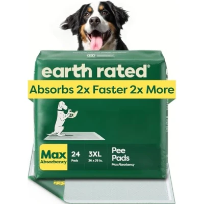Earth Rated Dog Training Pads for Puppies, Max Absorbency 2x Faster & More, Leak Proof 5 Layer Protection, Odour Control with Attractant, Unscented, 3XL, 91 x cm, 24 Pack