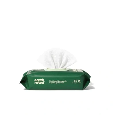Earth Rated Pet Wipes for Dogs and Cats, Hypoallergenic, Cleaning Hydrating, Grooming Paws, Body Bums, Unscented, 60 Count