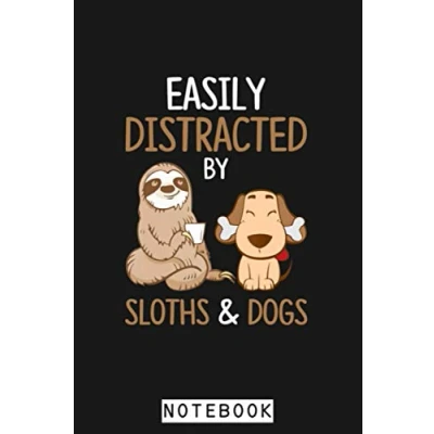 Easily Distracted By Sloths And Dogs Sloth Lover Gift Notebook: Diary, 6x9 120 Pages, Lined College Ruled Paper, Planner, Journal, Matte Finish Cover