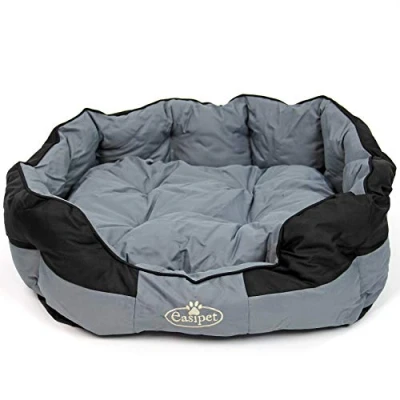 Easipet Waterproof Dog Bed, Large 75x60x25cm, Black/Grey with Reversible Cushion