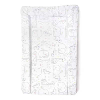 Charming Safari Print: Adorned with a delightful safari themed design, featuring animals such as giraffes, elephants, and zebras, bringing a playful and vibrant touch to your baby’s changing space. Safe and non-toxic materials: Made from phthalate-free PVC, this change mat ensures a safe, durable, and non-toxic surface for your baby’s delicate skin. Softly padded for comfort: Filled with high-quality foam padding, this comfortable changing mat provides gentle support during every nappy change. Waterproof and easy to clean: The wipe-clean surface makes it quick and easy to maintain, ensuring hygienic nappy changes with minimal effort. Fits most changing tables and dressers: Designed to fit standard-sized nursery furniture, the 74 x 46 x 4 cm dimensions make it a practical and versatile choice for parents.