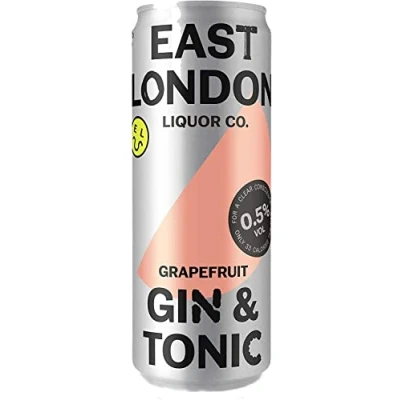 a g&t on the dl: this is our london dry gin distillate mixed with our tonic. all at 33 calories per can. 0.5% abv east london liquor company has always stood against expensive mediocrity. everyone should have decent booze for decent prices from decent people. it sounds radical, but it shouldn’t. Country string: United Kingdom Alcohol content: 0.5 percent_by_volume Serving recommendation: Chilled