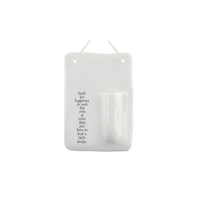 East of India Small Indoor Porcelain Hanging Wall Flower Vase Little Modern Home Ornament "Look for Happiness"