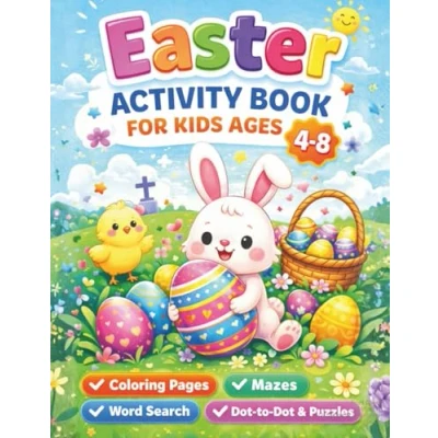 Easter Activity Book for Kids Ages 48: Basket Stuffer with Coloring Pages, Mazes, Word Search, Dot to Dot, and Symetry Drawings — Fun Gifts Boys Girls