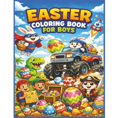 Easter Coloring Book for Boys: Fun Eggs, Bunnies, Monster Trucks, Dinosaurs, Rockets, and Adventure Scenes Boys Ages 48